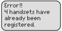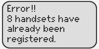 If this error message displays on your handset, please follow the instructions below to deregister your old handset before registering a new handset.