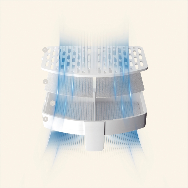Filtro a 4 livelli (rimuove impurità, particelle fini, peli, residui di cloro, ioni di calcio e magnesio)