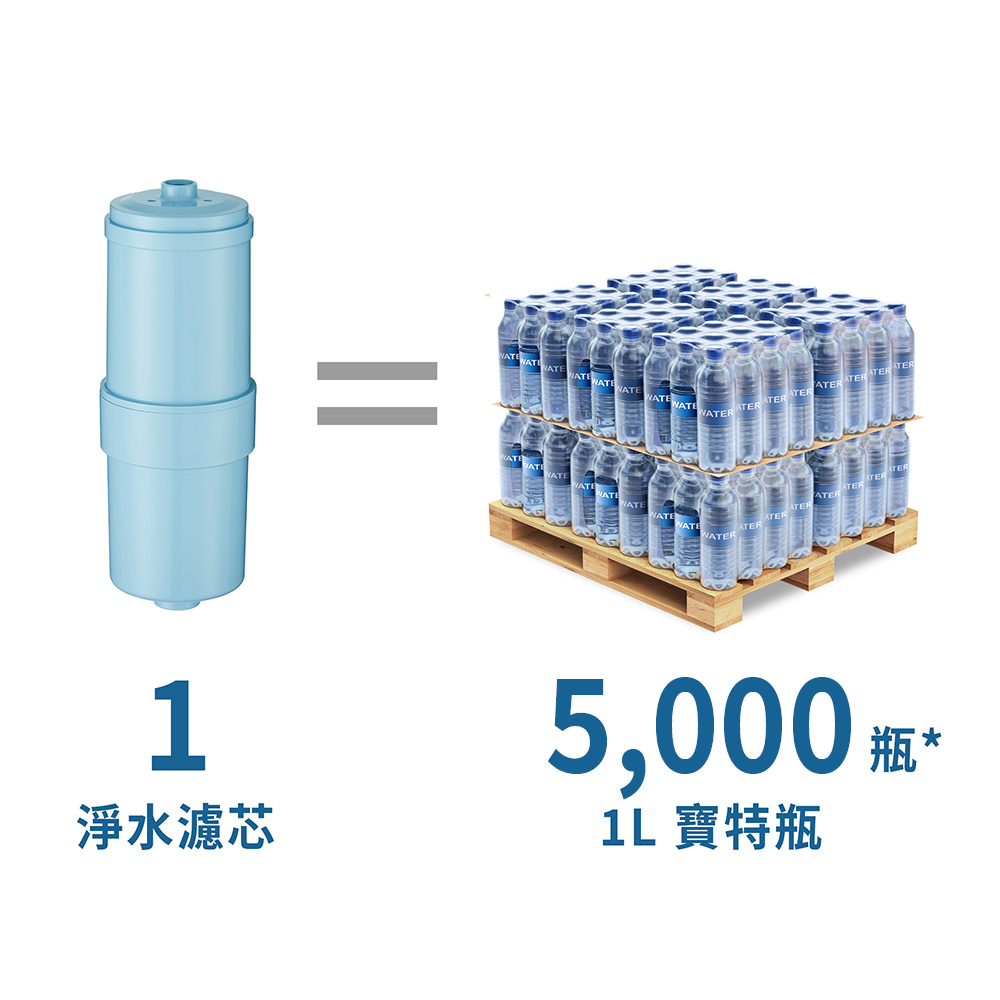 Panasonic淨水器PJ-37MRF,平均約9個月更換濾芯,不但降低成本,而且一個濾芯約可以濾出5000瓶1公升寶特瓶的淨水。