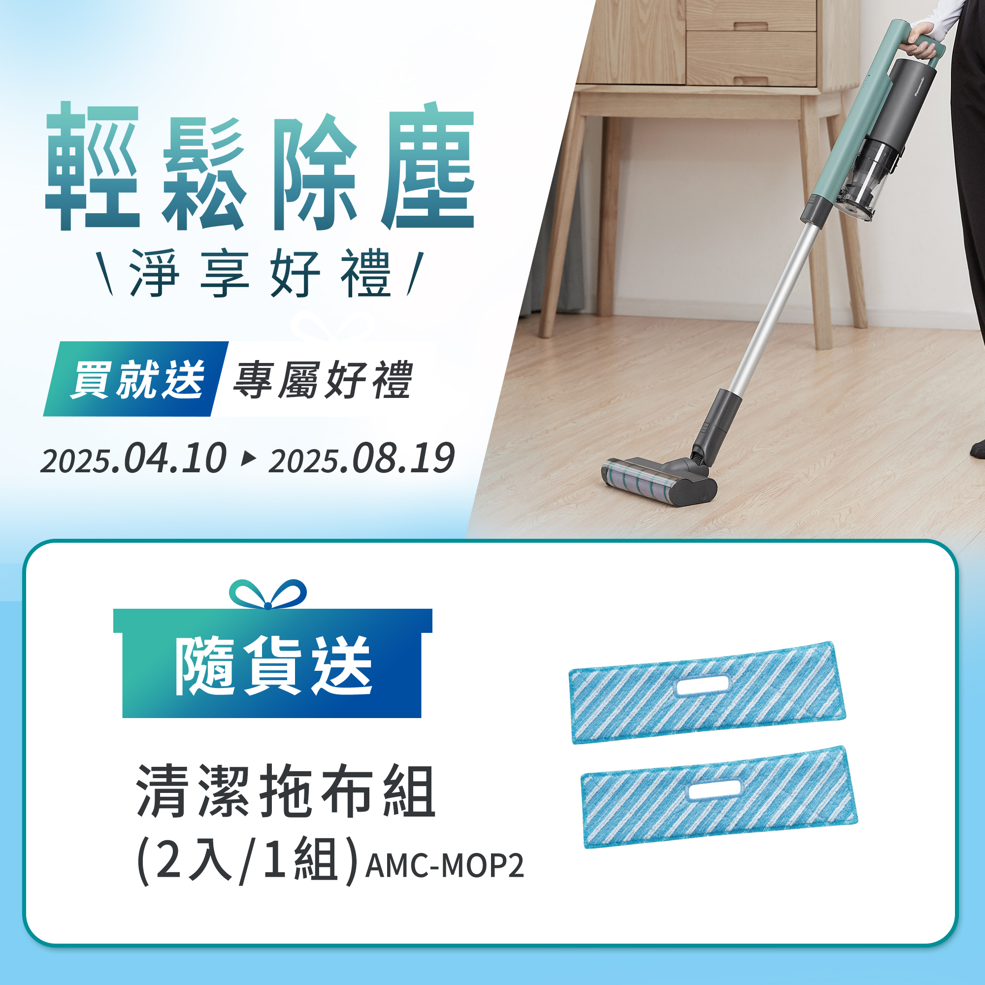 清掃時,透過前置吸頭先吸除灰塵髒污,同時搭配高效除塵拖布濕拖地板,地板清潔無須繁瑣步驟,一次就能輕鬆完成。