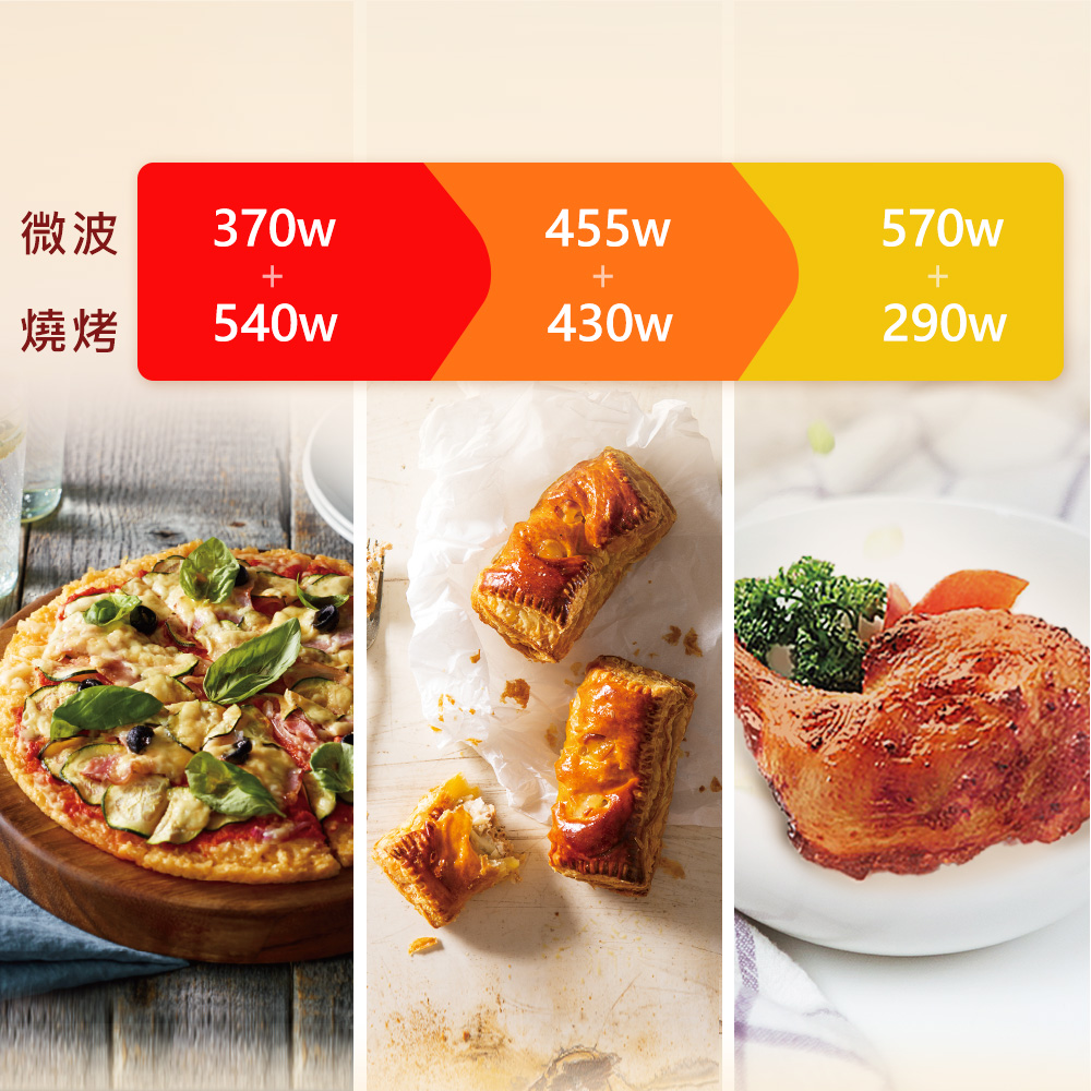 微波可以讓食物快速煮熟、內部充分受熱,燒烤能讓食物表面上色、口感酥脆,組合運用下讓料理輕鬆快速完成而且美味可口。