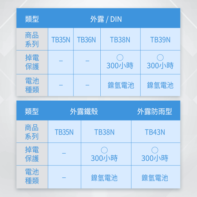 由於採用鎳氫電池,停電時仍會持續驅動。復電後,也會按照程式設定控制負載。