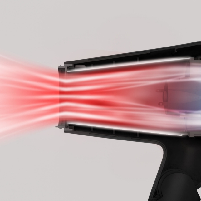 Nhờ sự kết hợp cân bằng giữa luồng khí mạnh mẽ và phân phối nhiệt nên máy sấy 2000W này hoạt động hiệu quả tương đương với máy sấy 2300W*.