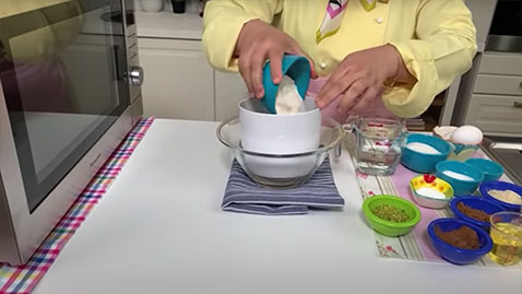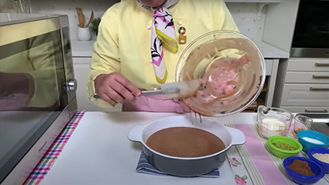 باستخدام خفاقة ، اخلطي جميع المكونات معًا مع إضافة الماء الدافئ واستمري في الخلط حتى تحصلي على مزيج كيك ناعم