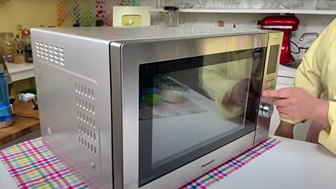 ادخليه ميكروويف باناسونك على قوة عالية ( ١٠٠٠) لمدة ٥ دقيقة ليتماسك وينضج.
