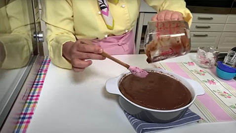الصلصة : في وعاء زجاجي عميق ضعي الكريمة، الكاكاو، الزبدة والفانيليا.