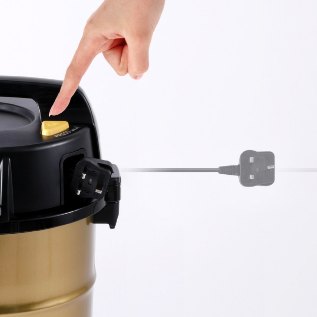 يمكن فصل الأسطوانة بسهولة من القاعدة الثقيلة بعجلات عن طريق الضغط على الدوّاسة. تتميز الأسطوانة من الداخل بسهولة تنظيفها أيضًا.