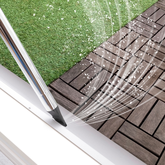 يعمل المنفاخ على طرد الرمل والأتربة الناعمة من المدخل والنوافذ لتنظيفها.