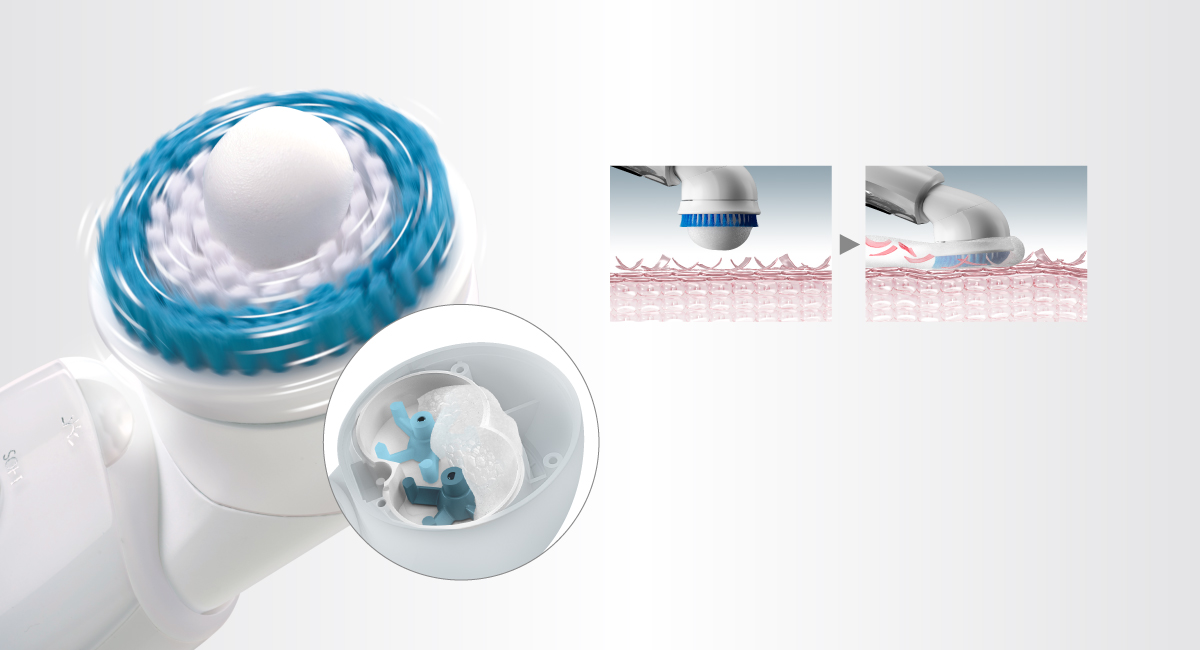 Sonic Vibration removes dead skin cells with a soft touch and speed not possible with washing by hand. The high-density brush head effectively removes dead skin cells while gently massaging the skin.