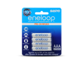You can recharge up to four AA/AAA eneloop and eneloop pro batteries at the same time in the following combinations: 2x AA, 4x AA, 2x AAA, 4x AAA, or 2x AA and 2x AAA.