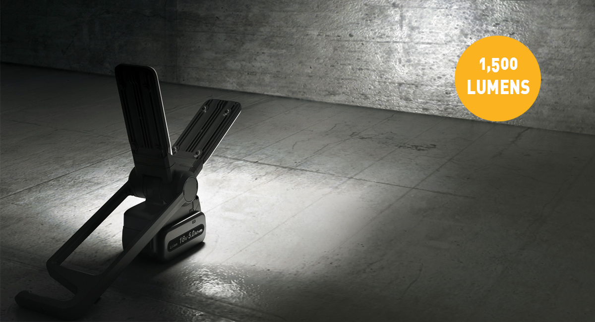 The new versatile, compact and lightweight LED flood light provides bright illumination (1500 lumens) where ever you need it. The flat lighting panels are angle and direction adjustable, ideal for wide peripheral, two-direction or overhead lighting. The brightness can be adjusted to suit different work environments.