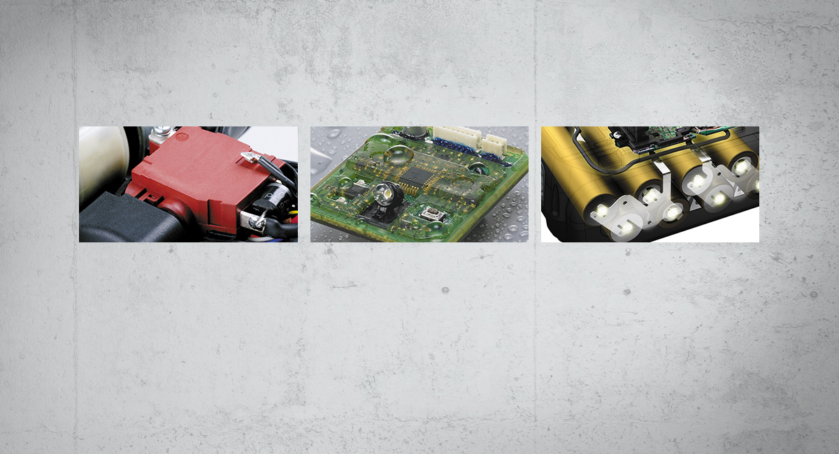 The electronic circuits of control panel and battery pack are covered by an Urethan layer for maximum dust and water protection.