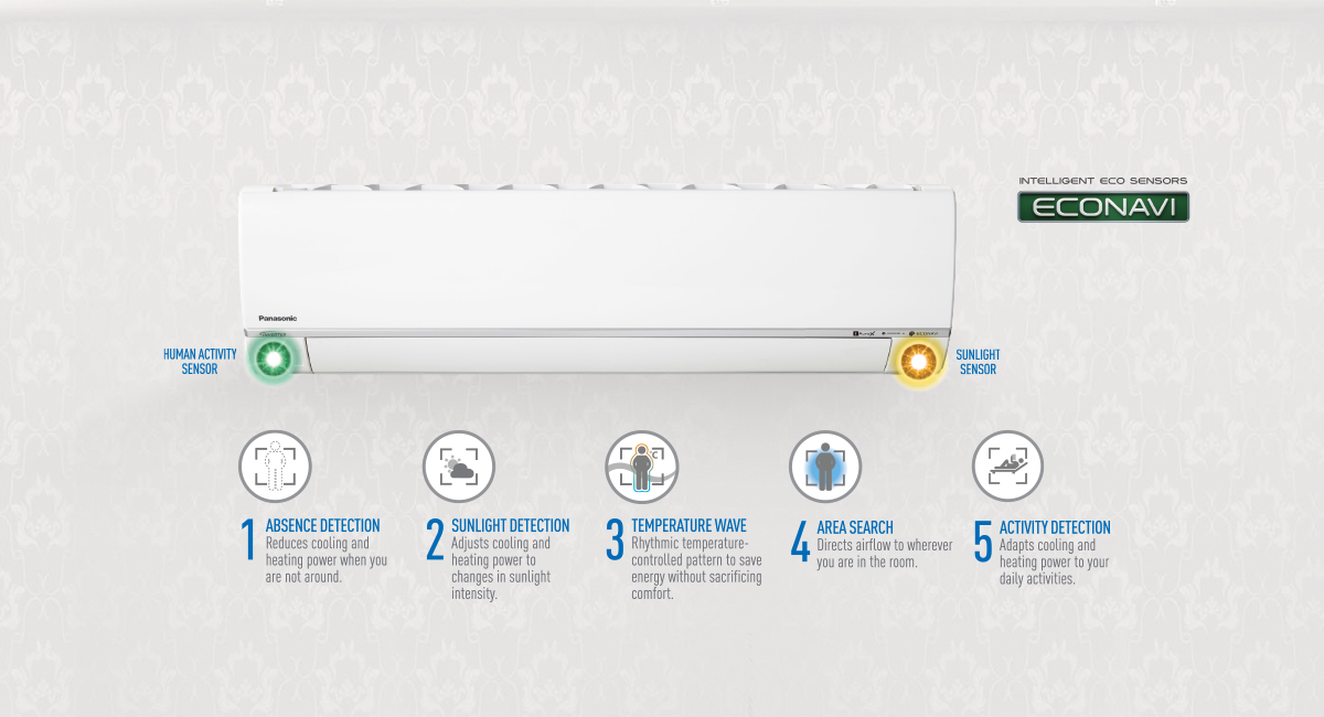 ECONAVI and INVERTER create a perfect match of energy saving features that keep the air conditioning in your home more efficient and comfortable throughout the day and night.