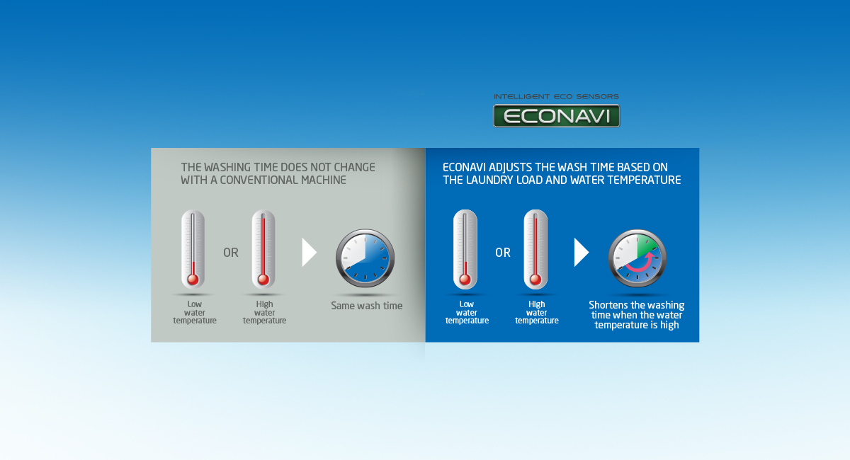 To achieve perfectly clean clothes the Inverter changes the motor’s rotation and output based on sensors inside the washing machine. This clever technology also ensures 4.5 star rated energy consumption and water efficiency.