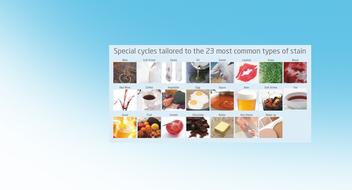 Forget club soda, hand scrubbing or purchasing a variety of harsh chemicals, the solution to removing stubborn stains is built right into Panasonic washing machines. Simply go to the Stain Solution option and select one of the 23 stains, mud to chocolate to tomatoes and more – then the machine will automatically combine the optimum temperature, stirring power and soaking power to beat the stain.