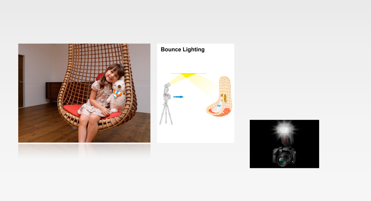Features a high-performance, high-intensity flash with automatic light adjustment, enabling flash shots up to GN50 intensity. The wide panel covers 16 mm wide angle of view (35 mm camera equivalent). Bounce photography is also possible, as you can rotate the light-emitting face 97° vertically and 270° horizontally. An FP TTL AUTO mode that repeatedly emits high-speed FP flashes makes it possible to use the flash even at fast shutter speeds. You can also set the camera to take a variety of flash shots, such as red-eye reduction, slow sync. and 2nd-curtain sync.