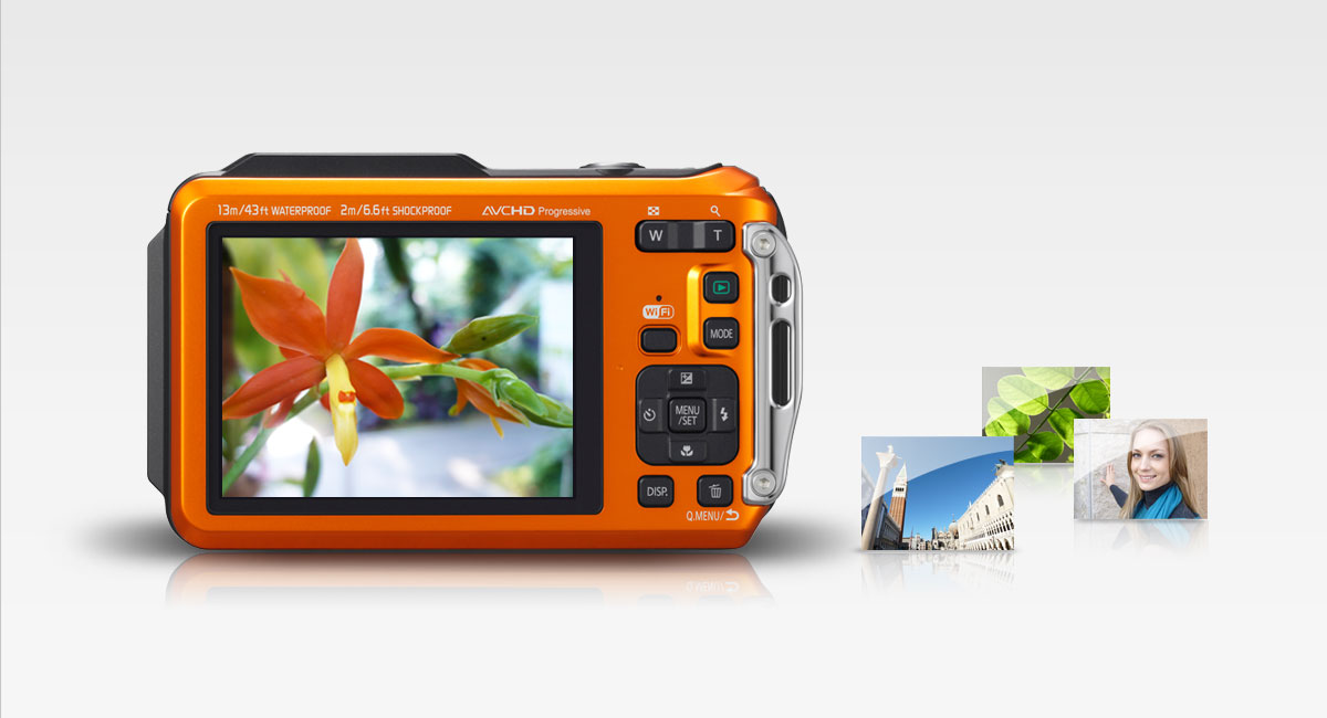 The LUMIX DMC-FT5 offers extra toughness by extending its waterproof performance to 13 m / 43 ft along with 100 kgf pressure resistance, Wi-Fi connectivity with NFC technology, and a variety of shooting options to form the ultimate multi-capable camera.