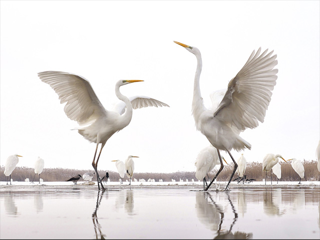 Les clichés ont été pris à partir d'une cachette sous-marine dans le parc national de Kiskunság, en Hongrie. Son objectif consistait à prendre des clichés rendant parfaitement l'atmosphère hivernale. Il a pour cela passé 20 jours dans sa cachette à attendre que la neige tombe.