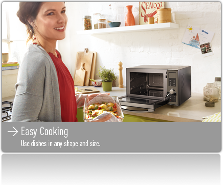 Le fond plat innovant accepte les plats de toutes formes et offre donc une surface de cuisson 57 % plus étendue que des modèles à plateau tournant. Inutile de préciser que son nettoyage est un jeu d’enfant.