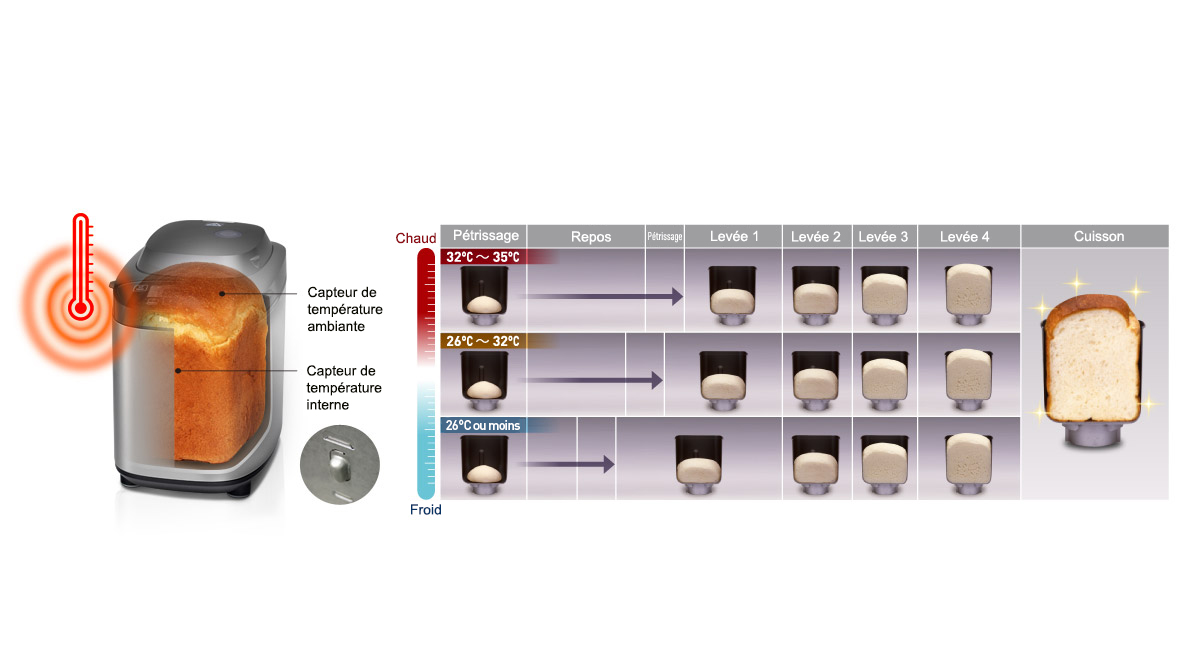 Les programmes de la machine à pain Panasonic adaptent chaque étape de cuisson en fonction de la température ambiante.