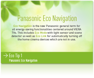 Un téléviseur moderne consomme 122 watts d’électricité (par exemple le téléviseur VIERA NeoPlasma TX-P42G30 avec une diagonale de 106 cm), ce qui est rapidement mis en perspective si l’on considère qu’une console de jeux consomme davantage et est souvent exclusivement utilisée pour la lecture de fichiers multimédia. En choisissant un lecteur Panasonic Blu-ray DiscTM (par exemple le DMP-BDT310), qui consomme 13 watts seulement, vous pouvez économiser une quantité potentiellement énorme d’électricité. Des spots halogènes utilisés dans une salle de séjour chauffent rapidement à plus de 300 watts. Ajoutez à cela un système stéréo de 100 watts et votre système Home Cinéma consomme bientôt plus de 600 watts. En ajustant votre utilisation, vous pouvez économiser beaucoup d’électricité.
