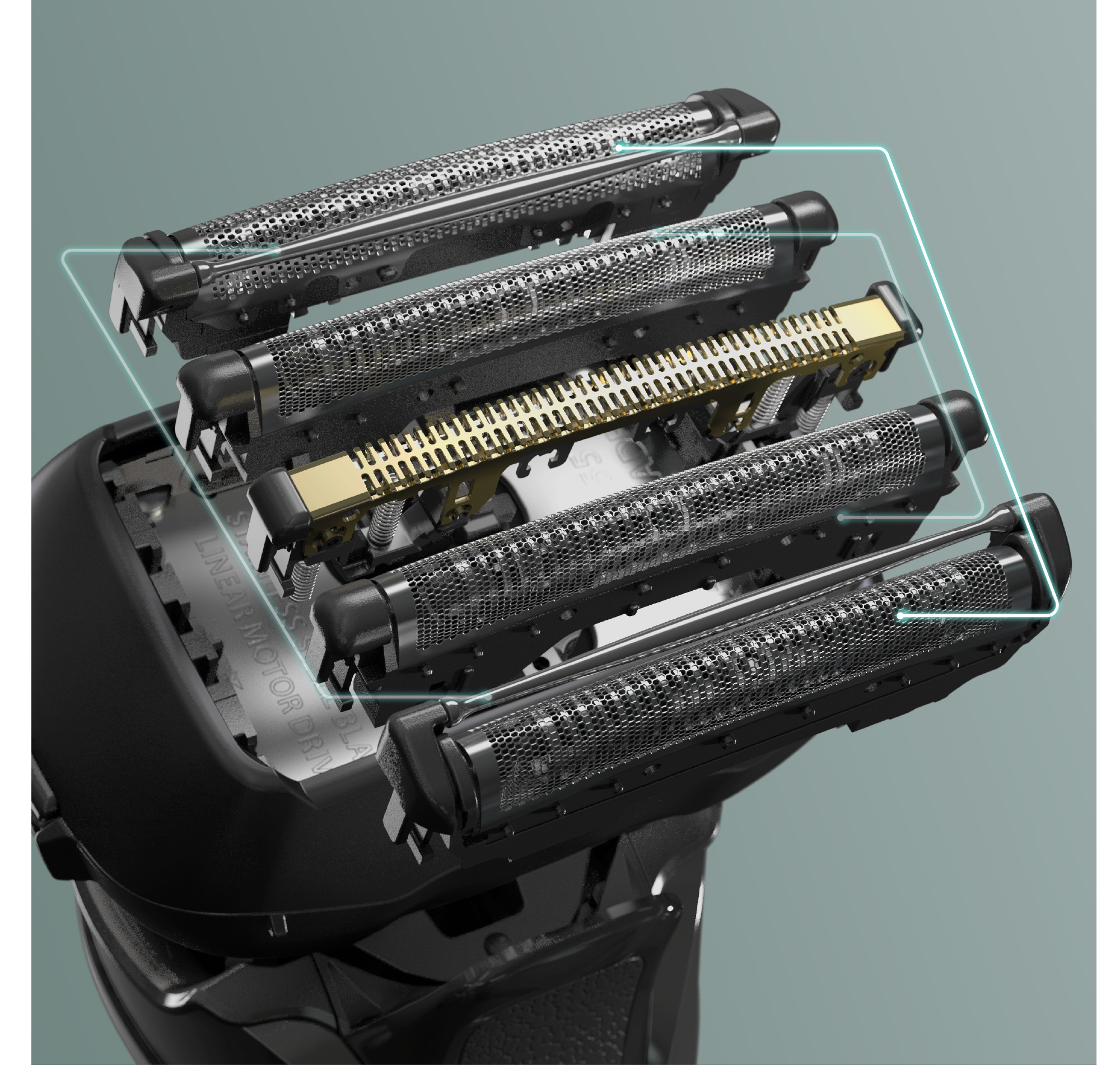 Flexibiliteit is essentieel wat betreft het beperken van het aantal benodigde bewegingen voor dicht bij de huid scheren, daarom is de Series 900 uitgerust met een 20D flexibele scheerkop. De kop beweegt in 10 richtingen en de 5 mesjes bewegen onafhankelijk in 10 richtingen - zowel verticaal als horizontaal - en volgen de contouren van het gezicht.