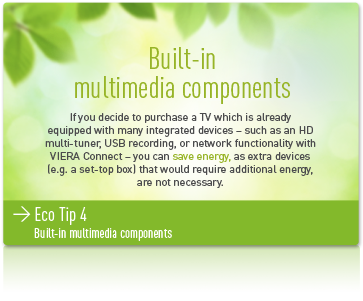 Net zo interessant is als de eerder genoemde technologieën: Panasonic TV's met een ingebouwde digitale tuner en USB-opnamemogelijkheid maken een externe settopbox overbodig. Hierdoor wordt meer dan 30 watt aan stroom bespaard.