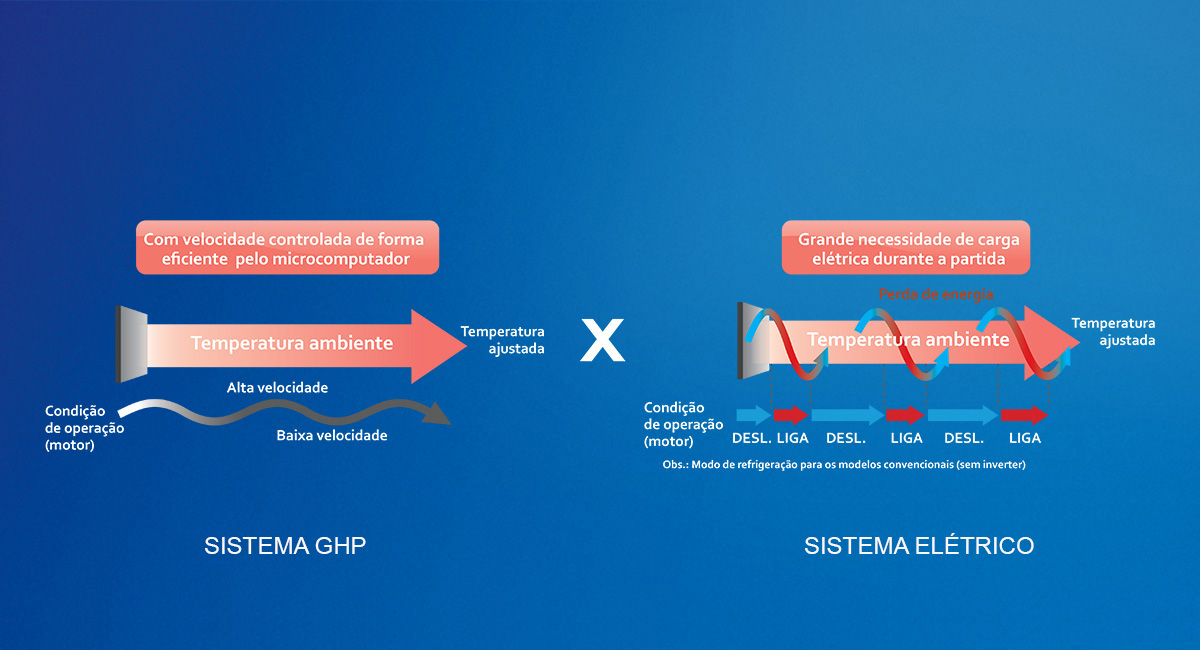 Devido ao baixo consumo de energia elétrica, o sistema GHP da Panasonic pode ser conectado aos geradores de emergência, garantindo a climatização dos ambientes mesmo com a interrupção do fornecimento de energia elétrica da concessionária.
