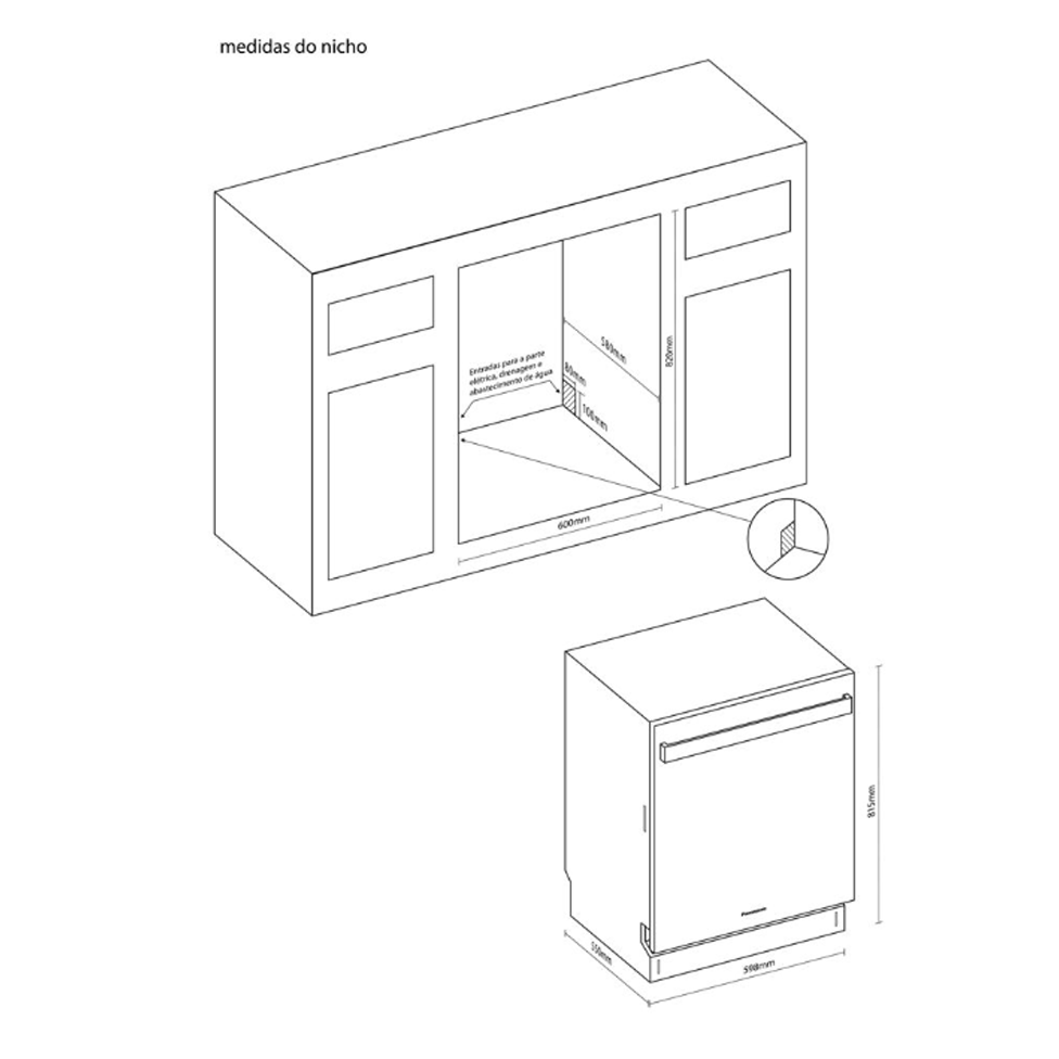 para Lava Louça Panasonic Black Glass, 15 serviços. NP-6M1MBKBRP