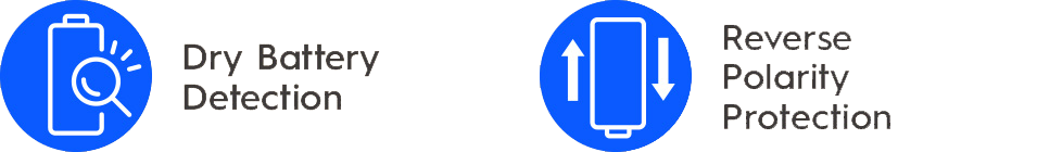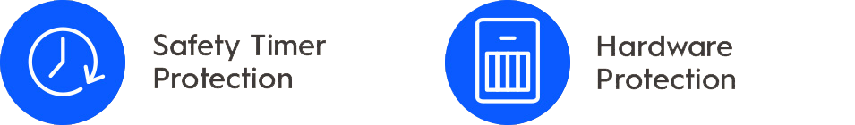 Safety charge | Minus Delta V (Detects voltage and stops charging just after overflow) |