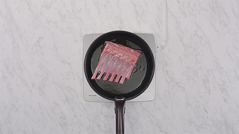 When it‘s done baking, take out the oven tray and put the lamb skin side up. Spread mustard on it, sprinkle persillade on it and put it in the oven again. Set it on the grill for 7 minutes and press the start button.