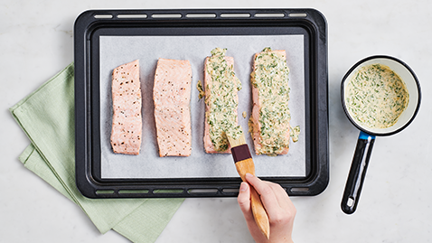 Brush salmon with dill sauce and set Oven to Broil 1 (high).