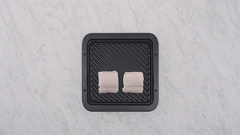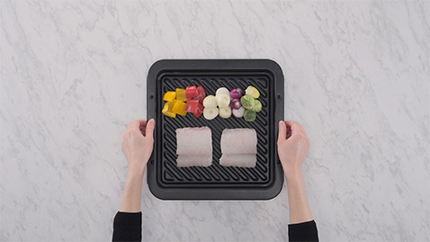 Arrange the cod and vegetables on an oven tray, and put them in the lower rack of the oven. Set it to 10 minutes with steam 1 and press the start button.
