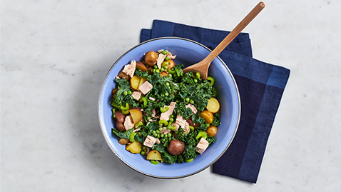 This simple dish is a delicious and hearty combination of tuna, potatoes, kale, celery and peas, drizzled in a creamy dill sauce. The tangy notes and warm filling will make it a perfect addition to your next summer potluck!