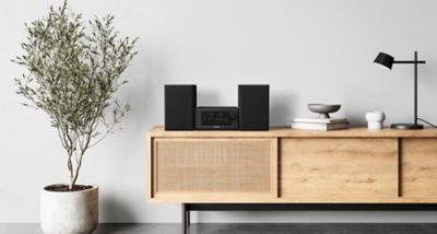 L’élégante microchaîne SC-PM700 est dotée d’un lecteur CD, d’une radio et d’un lecteur Bluetooth® sans fil. Grâce à la technologie de remastérisation, la musique est d'une grande qualité, d’où qu’elle vienne. Avec 80 watts de son clair et puissant, livré par une paire d’enceintes stéréo, vous serez bientôt perdu dans la musique.