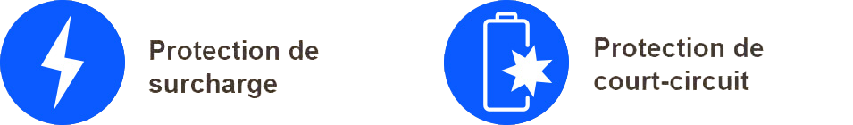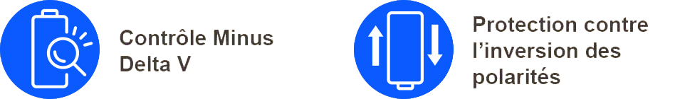 Charge de sécurité | Fonction Minus Delta V (détecte la tension et arrête la recharge juste après un dépassement de capacité) |