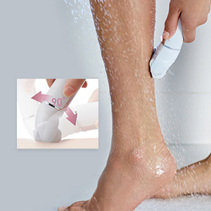 ● Lumière à DEL – Une lumière à DEL éclaire les endroits difficiles à voir comme les aisselles et la plante des pieds. Elle vous permet de mieux voir et de mieux effectuer les soins.