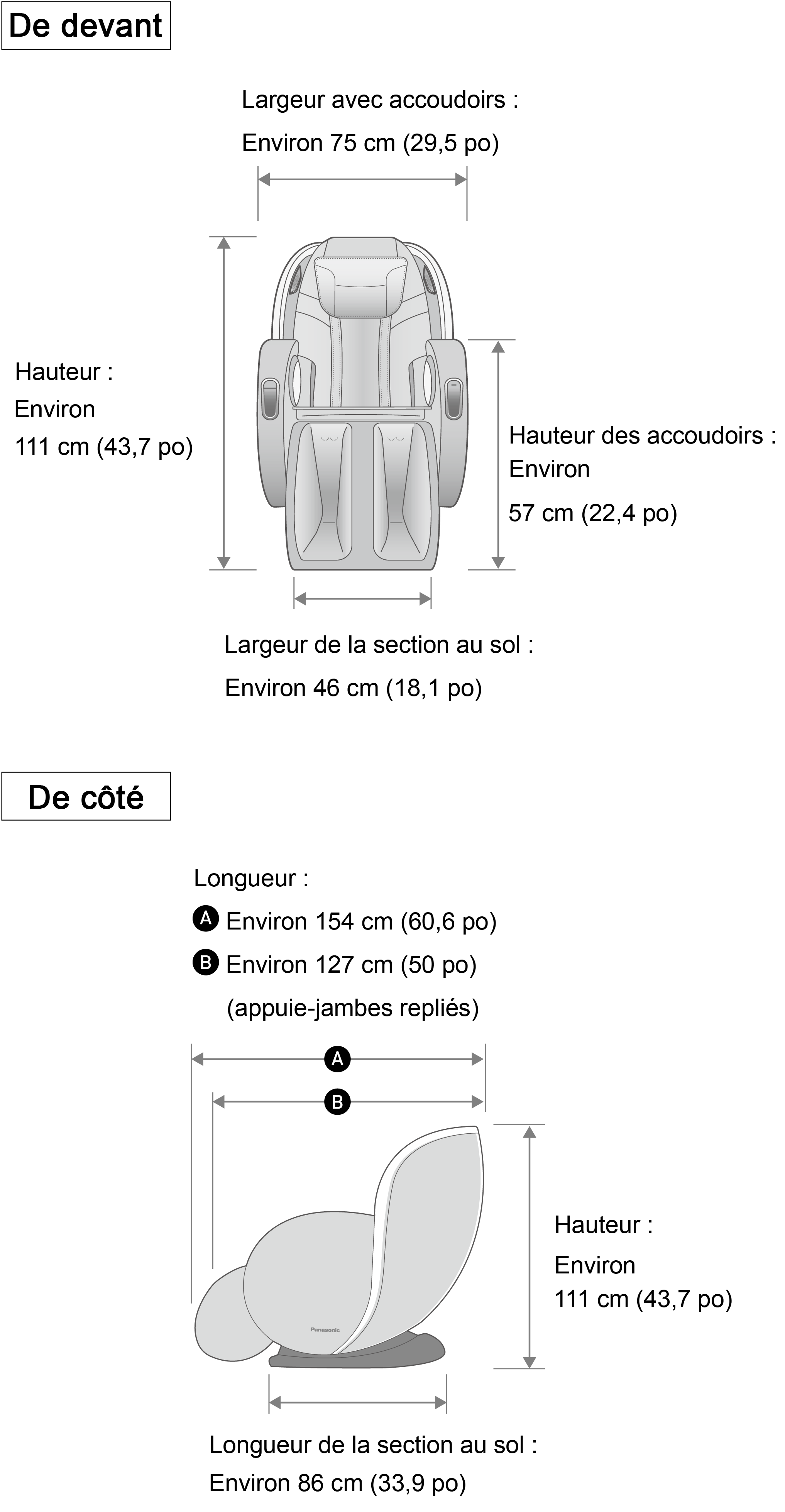 *En position inclinée (H × L × P) : 87 × 75 × 154 cm (34,2 × 29,5 × 60,6 po)