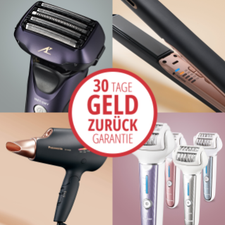 Sollte Ihnen der Panasonic Rasierer, Epilierer, Haartrockner oder Haarglätter nicht zu 100 % gefallen, erstattet Panasonic Ihnen den vollen Kaufpreis – ohne Wenn und Aber!