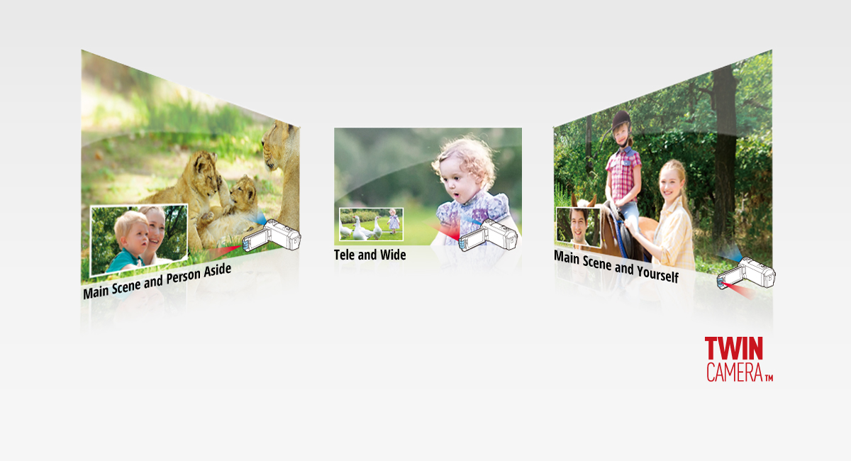Die Doppelkamera zeichnet zwei Szenen gleichzeitig auf – für doppelten Video- und Foto-Spass. Halten Sie Ihre schönsten Momente in bester Bildqualität fest – mit dem weltweit ersten* 4-Drive-Linsensystem und verbesserter Level-Shot-Funktion.