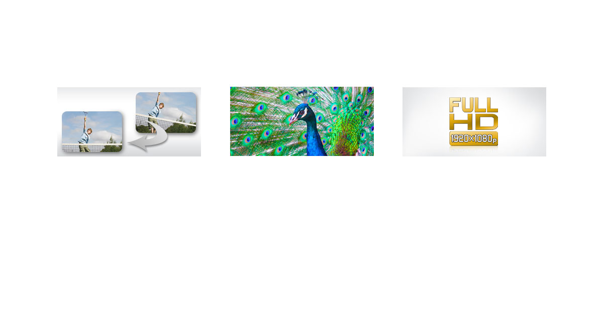 Drei Bildsensoren verarbeiten die Primärfarben Rot, Grün und Blau separat, wodurch brillante Bilder mit einer exzellenten Farbwiedergabe und Detailfülle erzielt werden. Die Pixel-Shift-Technologie, bei der der grüne MOS Sensor um exakt einen halben Pixel vertikal und horizontal gegen den blauen und roten MOS Sensor verschoben wird, erzeugt eine enorm grosse Pixelanzahl, die der vierfachen Full HD Auflösung entspricht. Die BSI Sensoren sorgen auch bei schwachem Licht für hervorragend rauscharme Aufnahmen.