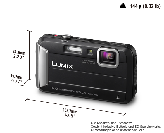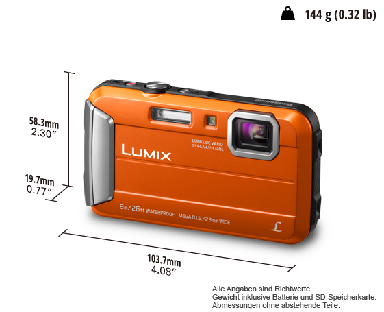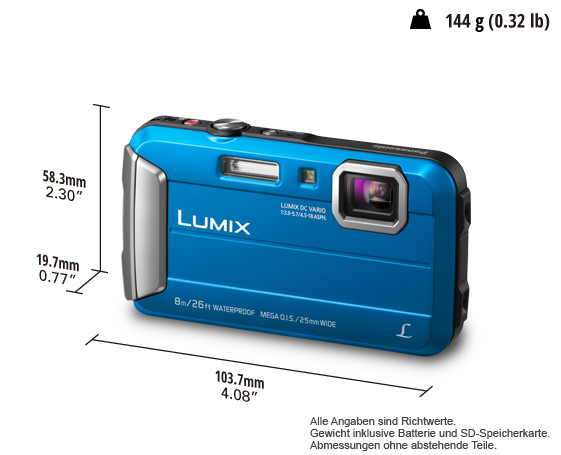 Die LUMIX DMC-FT30 ist extrarobust und bis zu 8 m wasserdicht. Sie überzeugt zudem durch eine Vielzahl an Spezialmodi wie der zeitversetzten Aufnahme und dem kreativen Panorama und einer grossen Auswahl an attraktiven Filtermodi.