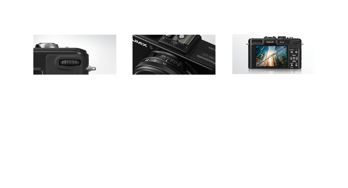 Die LUMIX LX7 ist mit einem 7,5 cm (3“) großen LC-Display ausgestattet, welches sich durch seine hohe Auflösung von 920.000 Bildpunkten und den weiten Betrachtungswinkel auszeichnet. Die neue High CRI (Color Rendering Index) LED-Hintergrundbeleuchtung verbessert die Monitorbildqualität nochmals deutlich. So ist auch in heller Umgebung eine sichere Bildkontrolle bei der Aufnahme und angenehme Betrachtung bei der Bildwiedergabe in lebendigen, naturgetreuen Farben gewährleistet.