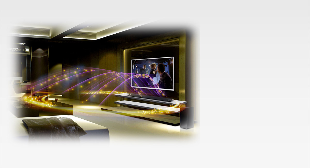 Durch die neuartige und elegante Dreiecksform lässt sich das HTB880 leicht überall unterbringen. Das hochwertige 5.1-Kanal-Sound-System erzeugt ein räumliches Klangfeld mit einer realistischen Akustik sowie klare und gut verständliche Dialoge. Dieses Modell bietet außerdem 4K-Kompatibilität sowie neue Funktionen wie Bluetooth® und NFC.