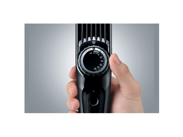 Haarschneider. Akku- und Netzbetrieb, 100-240 V, 8h Ladezeit, 40 Minuten Betriebszeit, 2 Aufsätze mit Schnittlängen von 0,5-25mm in 25 Stufen, schneidet auch nasses Haar, nass abwaschbar. Der Kammaufsatz arretiert bei eingeschaltetem Gerät.