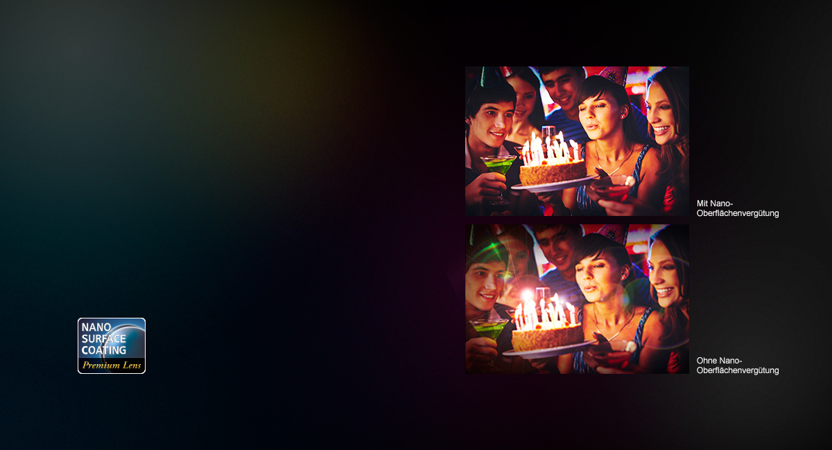 Minimieren Sie unerwünschte Lichtreflexionen – dank der Nano-Oberflächenbeschichtung. Diese spezielle, ultradünne Beschichtung wurde von Panasonic entwickelt, um störende Lichtreflexionen über die gesamte Reichweite des Lichtspektrums hinweg zu reduzieren. Das Ergebnis sind kristallklare Bilder, selbst bei Aufnahmen von Lichtquellen in der Dunkelheit.