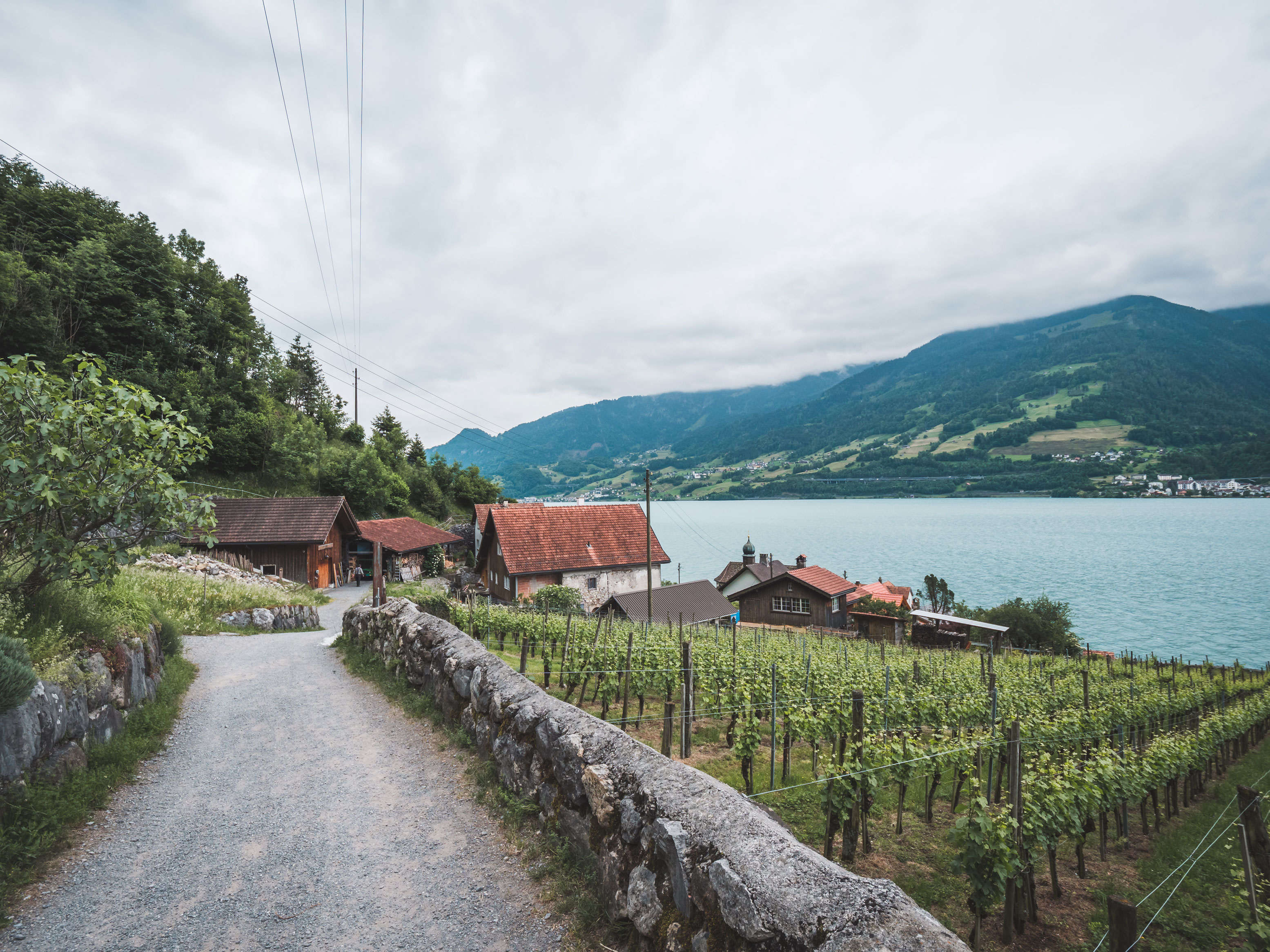 Si vous souhaitez rejoindre le petit village viticole à pied, vous pouvez commencer la randonnée tranquille à Weesen. Le long des rives du lac, le sentier emprunte d’abord des routes pavées et passe devant le lido pour rejoindre Betlis. Ici, il est recommandé de prendre le plus haut des deux chemins. Il est beaucoup plus beau et n’est pas pavé. Avec une vue sur l’eau bleu turquoise, l’itinéraire continue le long de ce qu’on appelle la Riviera de la Suisse orientale. Le nom vient du fait que des palmiers, des figuiers, des kiwis et d’autres plantes plutôt exotiques y prospèrent. Et le climat ici est également idéal pour les raisins.