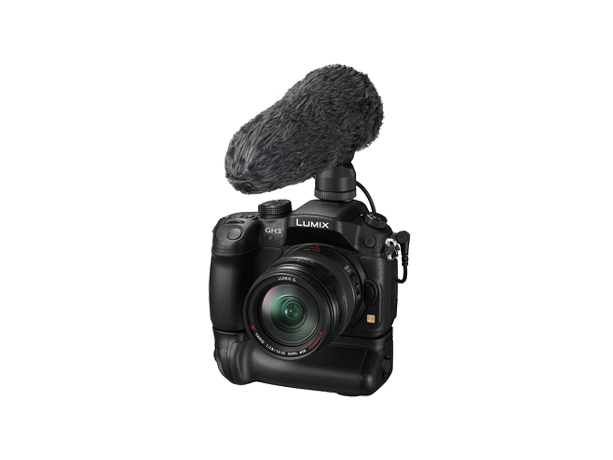 Microphone stéréo Shotgun pour Lumix DMC-GH3 S’utilise au choix comme microphone stéréo ou Shotgun. Prise mini jack de 3.5 mm, comprenant également une protection contre le vent et une pochette