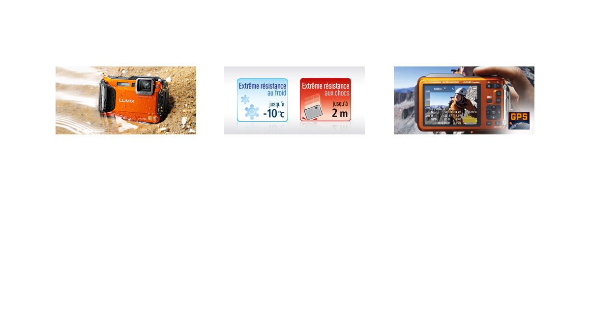 Le Lumix FT5 est le dernier-né dans la famille des appareils photo tout-terrain LUMIX. Non seulement il est étanche à la poussière, à l’eau jusqu’à une profondeur de plongée de 13m, résistant aux chocs jusqu’à une hauteur de chute de 2m, au gel jusqu’à -10°C, il supporte même les charges allant jusqu’à 100kg. C’est votre compagnon idéal pour la plongée sous-marine, la natation avec masque et tuba, le surf, l'escalade, le ski, le snowboard, le camping ou le vélo. Avec son capteur haute sensibilité MOS à 16,1 mégapixels et son objectif Leica, le FT5 vous garantit des photos étonnantes de brillance et des vidéos 50p Full HD.