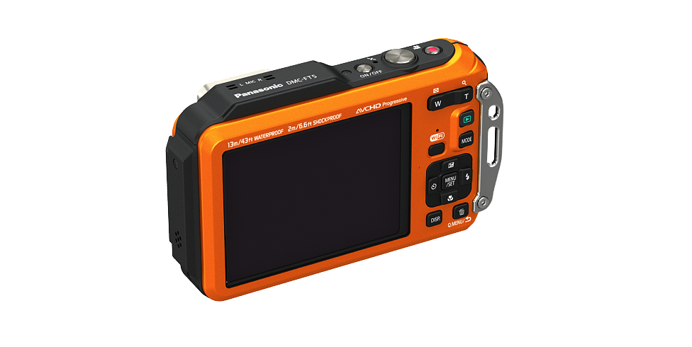 Le LUMIX FT5 est disponible dans les coloris argent, orange, noir et bleu vif.